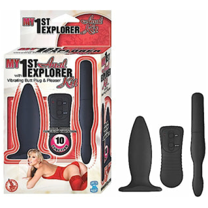 My 1st Anal Explorer Kit Vibrating Butt Plug and Please – Black