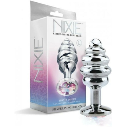 Nixie Ribbed Metal Butt Plug Honey Dipper Large