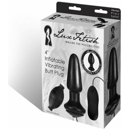 Lux Fetish 4 inches Inflatable Vibrating Butt Plug Black
