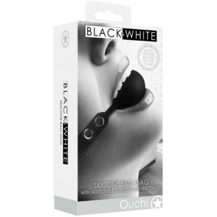 Ouch! Black & White Silicone Ball Gag With Adjustable Bonded Leather Straps Black