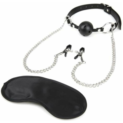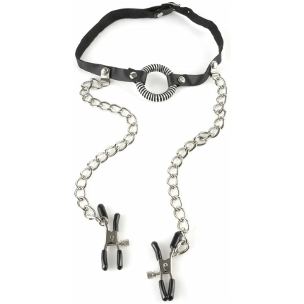 Fetish Fantasy O-Ring Gag With Nipple Clamps