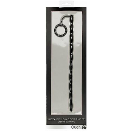 Silicone Plug & Cock Ring Set – Urethral Sounding – Black