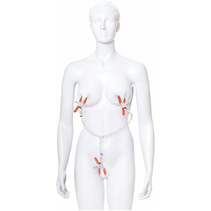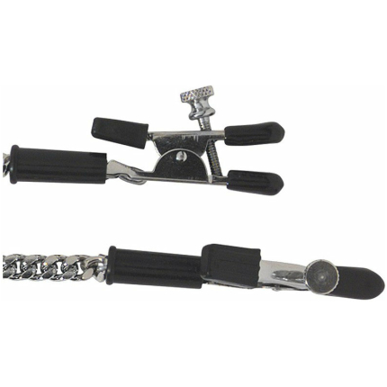 Spartacus Adjustable Nipple Clams With Curbed Chain Rubber Tipped