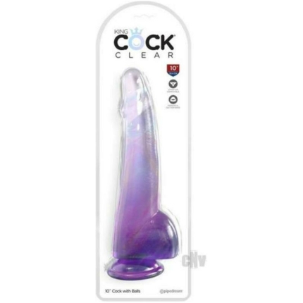 King Cock Clear With Balls 10inpurple