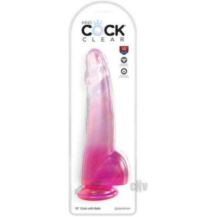 King Cock Clear With Balls 10in Pink