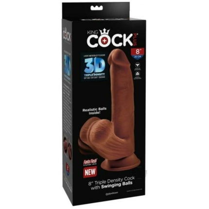 King Cock Plus 8 In. Triple Density Cock With Swinging Balls Brown