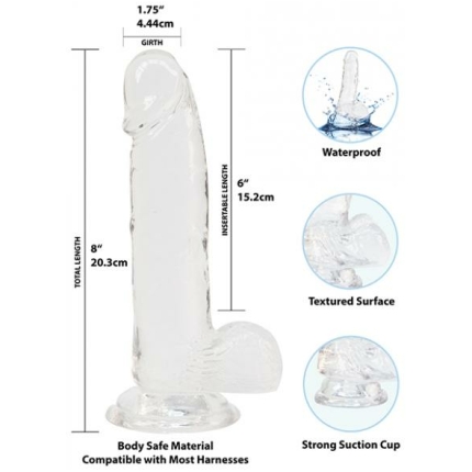 Crystal Jellies 8 Inch Classic Dildo in Clear