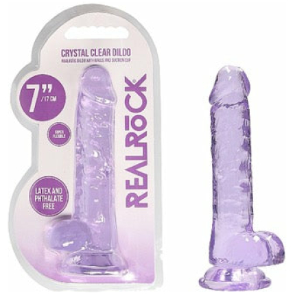Shots RealRock Realistic Crystal Clear 7 Dildo w/Balls – Purple