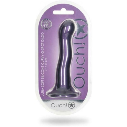 Shots Ouch! Ultra Soft Silicone 7 In. Curvy G-spot Dildo Metallic Purple