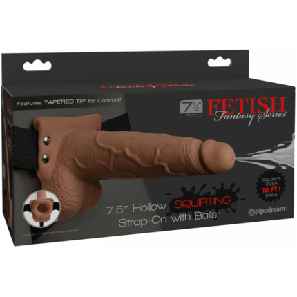 Fetish Fantasy 7.5in Hollow Squirting Strap-on With Balls, Tan