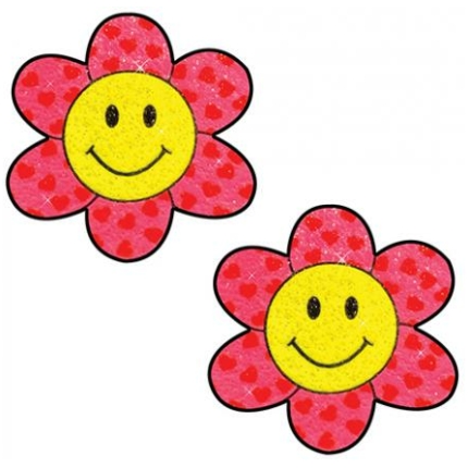Neva Nude Smiley Flower Power Glitter Pasties – Pink/yellow O/s