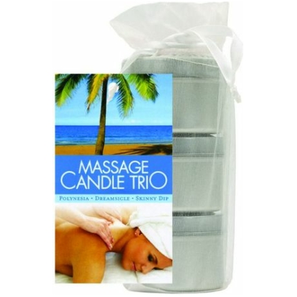 Earthly body massage candle trio gift bag – 2 oz skinny dip, dreamsicle, and polynesia