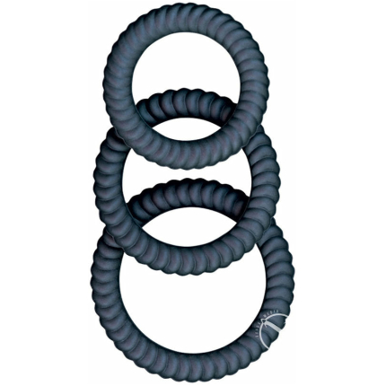 Spartacus Rubber Cock Ring Set – Black Pack of 3