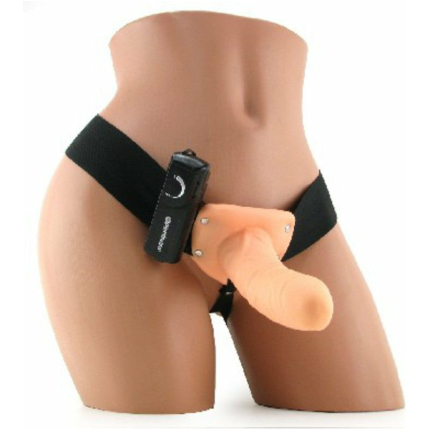 6″ Vibrating Hollow Strap On – Beige
