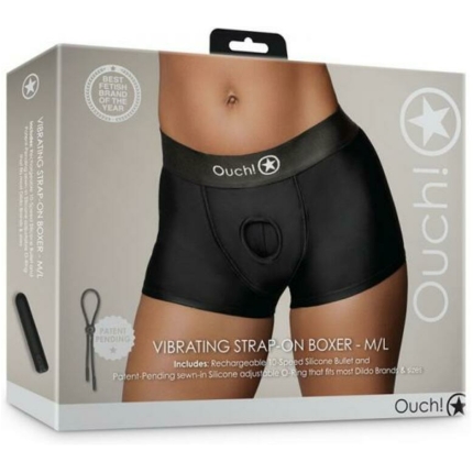 Shots Ouch! Vibrating Strap-on Boxer Black M/l