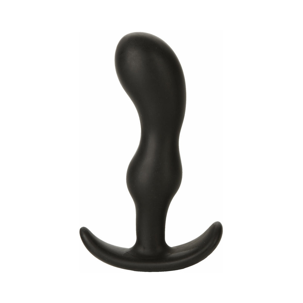 Platinum silicone butt plug is nonporous and hygienic, with a curved ergonomic base. 3.5 in. length.