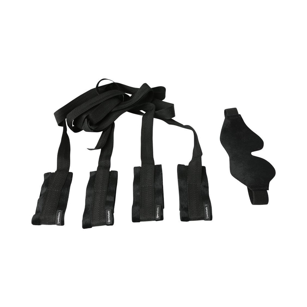 Beginner’s Bondage Fantasy With four wrist and ankle restaints attached to nylon straps, this set is sure to produce a happy ending. Now includes a Soft Blindfold and it’s pure bondage heaven for any novice. Connector straps are 44 inches in length.