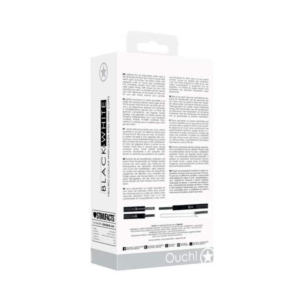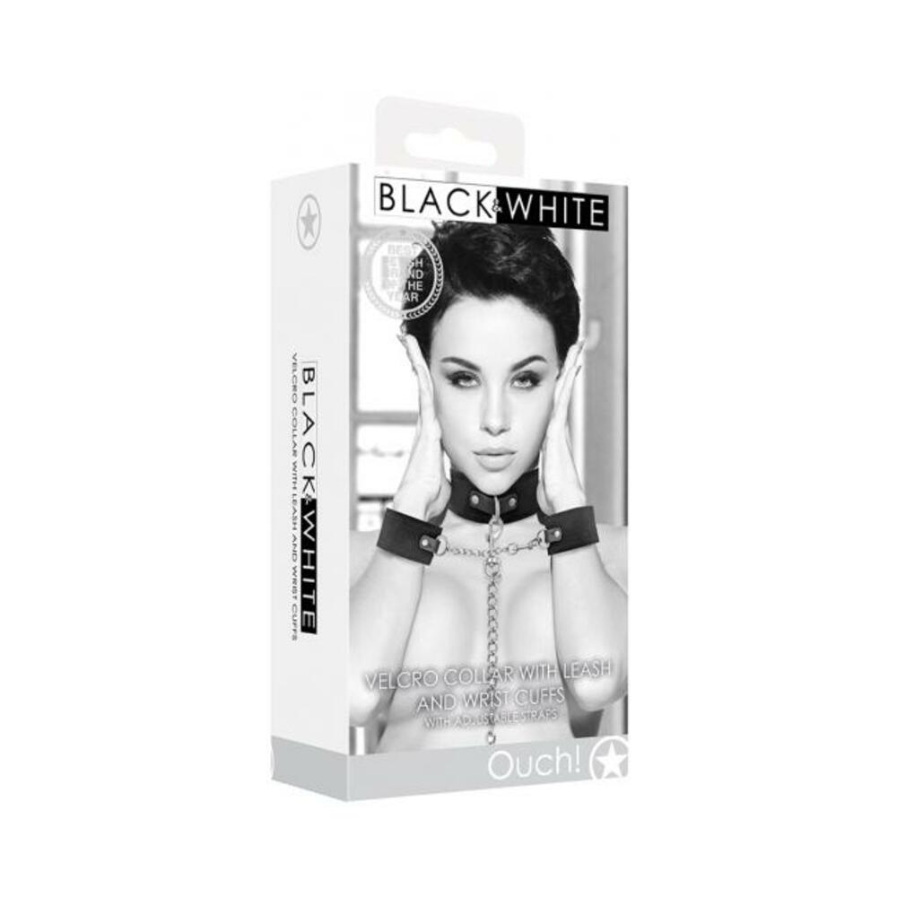 Ouch! Black & White Velcro Collar With Leash And Wrist Cuffs With Adjustable Straps Black