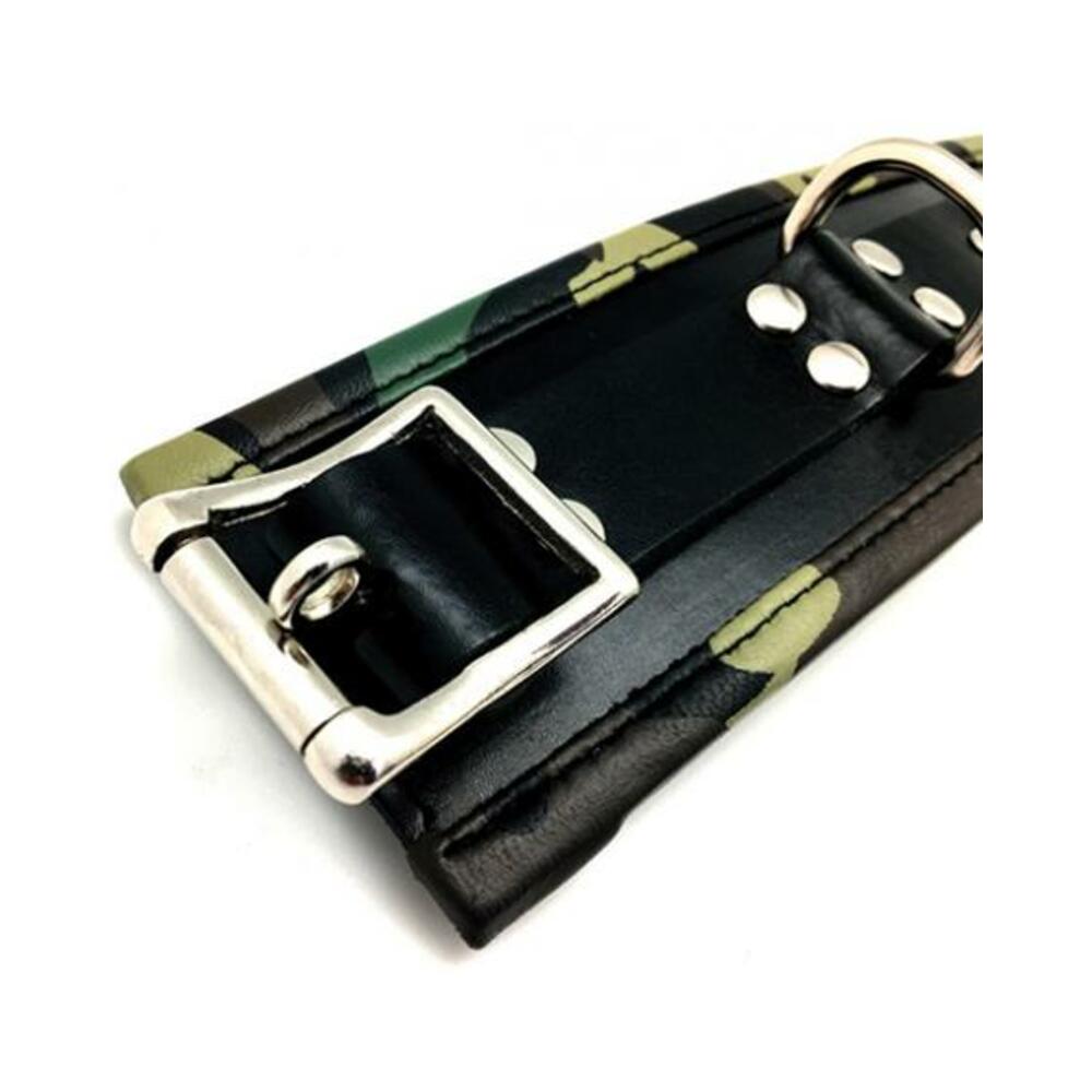 Sensual Sin Leather Padded Ankle Cuffs Camo Piping