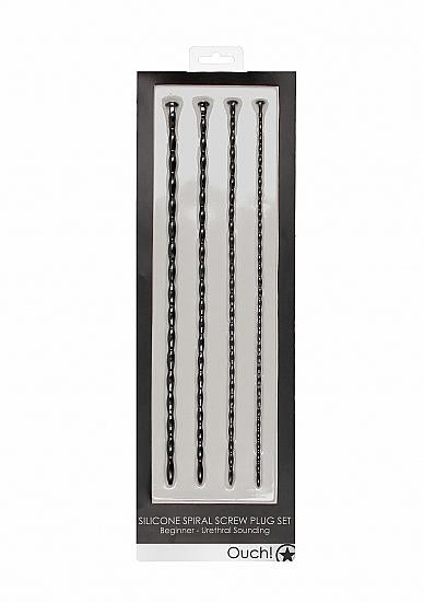 Shots Ouch Beginner Urethral Sounding Silicone Spiral Screw Plug Set – Black