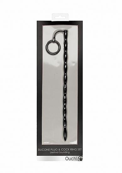 Silicone Plug & Cock Ring Set – Urethral Sounding – Black
