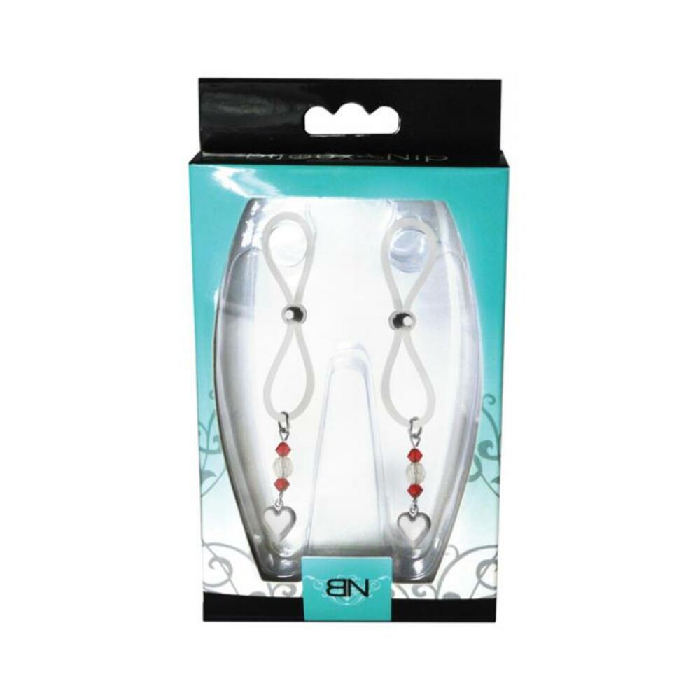 Bijoux de Nip Nipple Halos with Heart Charm from PHS international. Lasso style nipple halos are adjustable. Just slide the silver bead up to tighten and down to release the nipple. Color Red, Clear.