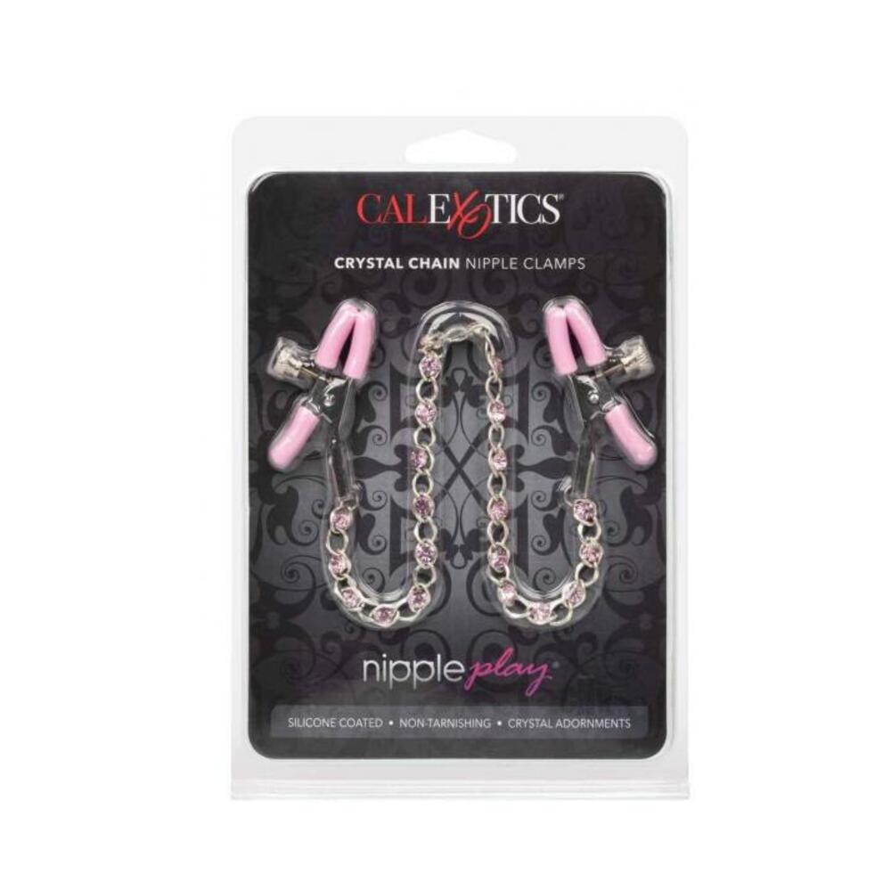 Push sensation to the next level and enjoy teasing nipple play with the Nipple Play® Crystal Chain Nipple Clamps; Explore elevated sensation with the 2 fully adjustable nipple clamps, teasing chain and sparkling crystals. Reach new levels of playful pleasure with the adjustable clamps; Clamp the naughty clasps to your body and enjoy every rush of pain and pleasure. The teasing clamp has adjustable tension to stimulate anywhere on your body for playful teasing; As the tension tightens, the tingles intensify with every turn of the dial for the ultimate in nipple stimulation toys. With the teasing clamp stimulation and increased blood circulation, you can look forward to amplifying nipple sensitivity and intensify overall arousal; These easy-to-use nipple teasers are great for him or her. The two adjustable clamps are made from nickel-free iron with silicone cote, an nickel-free iron chain and Silica crystals.