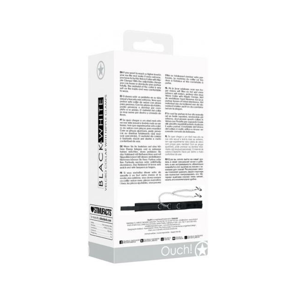 Ouch! Black & White Velcro Collar With Nipple Clamps With Adjustable Straps Black