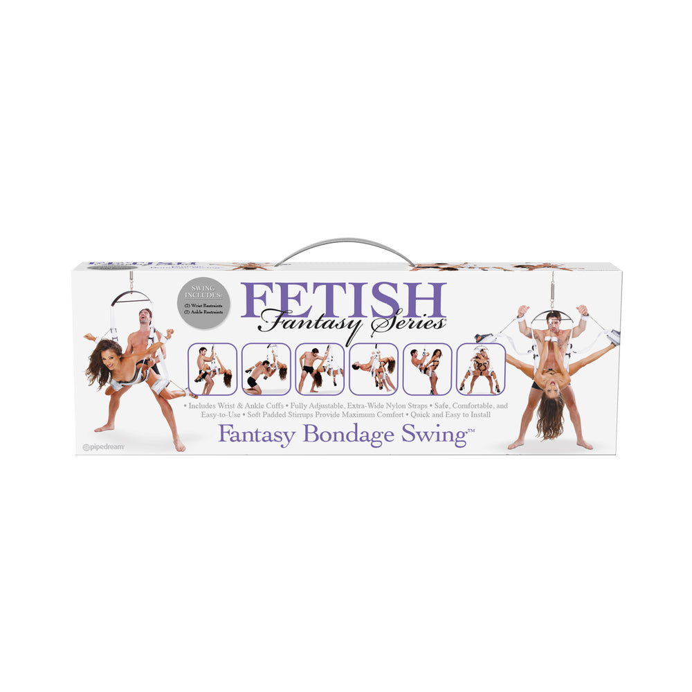 Difficult sexual positions are no longer exclusive to the athletic and sexually gifted…Now, any couple can perform the most difficult, most stimulating sexual positions ever imagined—and reap the benefits and pleasures they arouse! Enjoy weightless sex in unlimited positions and explore your deepest fantasies with this incredible Fantasy Bondage Swing. Perfect for lovers of different sizes, the Fantasy Bondage Swing easily adjusts to any height or angle, saving you from contorting your body in uncomfortable positions that interfere with each other’s arousal. But this is no ordinary pleasure swing–this swing features strategically placed D-rings attached to the swing that connect to wrist and ankle cuffs. The adjustable cuffs feature metal chains and metal clips that work together to form the most amazing bondage swing ever created. Unlike ordinary swings, the Fantasy Bondage Swing has sturdy metal D-rings strategically placed along the swing, allowing you to explore a variety of restraint positions while you swing. With unlimited positions to choose from, this swing becomes the centerpiece in your own private, ultimate bondage playground. It’s perfect for beginners and fun and exciting for everyone! Try new sexual positions that would normally require tremendous exertion and skill, and execute them with ease! You and your lover will be amazed how easy it really is to find the optimum angle to achieve deep penetration with minimal exertion. Sex in these challenging positions has never felt so good—and never been so effortless! For the ultimate comfort and enjoyment, swing into action and let your imagination run wild!