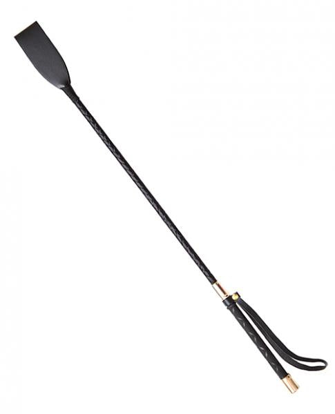 PVC Crop. Braided handle with gold accents. 21 inches overall. Handle is 6 inches. Wrist strap.