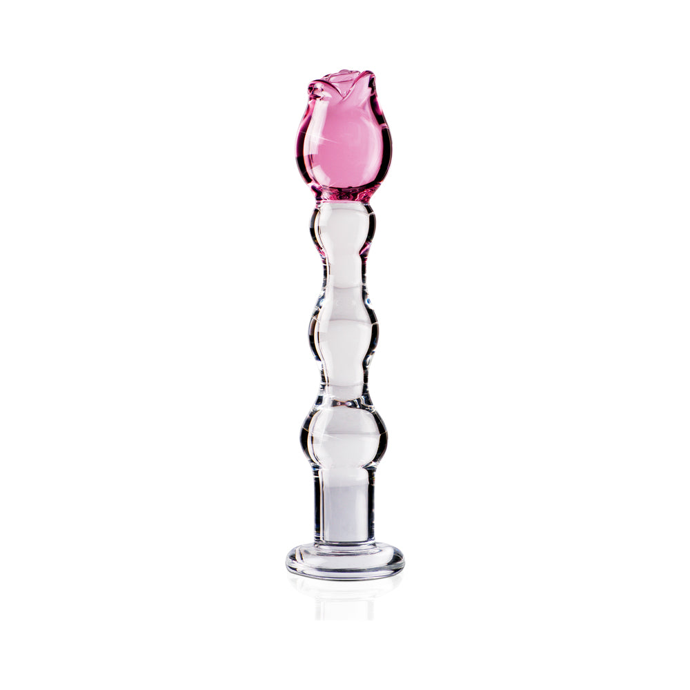 Icicles No. 12- Glass Dong With Flower On TopElegant, upscale, and hand-crafted with amazing attention to detail, this luxurious line of glass massagers will leave you breathless. Each hand-blown Icicle Glass Wand is sleek, unique, and made to play hard.The hypoallergenic glass is nonporous and body safe, and when cared for properly, is designed to last a lifetime. Run the wand under warm water or place it in the microwave to heat things up. Chill it under cold water or put it in the freezer for a cool sensation. Since glass is nonporous, cleanup is a snap with toy cleaner and warm water, or throw it in the dishwasher for a worry-free wash after the fun.Glass. Wavy shaft with Rose shaped tip. Length: 7.75 inches. Width: 1.5 inches. Girth: 4.75 inches.