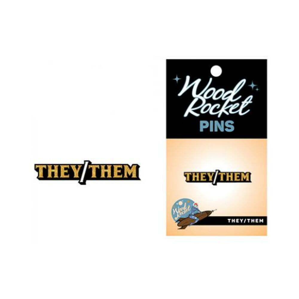 This fun They/Them Pronoun soft enamel lapel pin by Wood Rocket is the perfect accessory. Wear your pronoun everywhere you go! This pin has gold glitter and looks fantastic! Stick it on your hat or clothes or backpack or bag or purse it or give it as a gift!