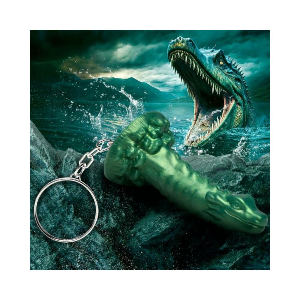 This green Cockness Monster inspired by the Lochness monster has shrunk down to travel with you wherever you go! Let your freak flag fly with these Creature Cocks keychains! Show off that you’re into fantasy roleplay, mythical sex, or hot horror monsters! Place them with your keys, attach them to your phone case, clip them onto a bag or purse, or hang them from your rearview mirror to add a little flair and kinky fun! All the little dongs are made out of premium, phthalate-free, body-safe silicone and the metal is nickel-free for sensitive skin. Not meant for internal use. Novelty item only. At twilight, the sun hits the water just right. You’re boating out on the water and know you should return, but the way the water glitters as the sun sets is too beautiful and you’ve stayed out later than you should. You know these waters, there aren’t supposed to be mysteries or surprises but a strange fog has rolled in and the mists hang heavy and low over the water’s surface. You see a ripple in the water and the hair on the back of your neck stands up. Something bumps the bottom of your boat and rocks it so you nearly fall over. Panicked, you grab the oars and begin to paddle back to shore. It’s too late! Another bump and you’ve fallen into the water! As you gasp for breath, your arms and legs thrashing to keep your head above water, something wraps around you! Instead of drowning you, a head lifts up out of the water and looks you right in the eye. Your heartbeat speeds up and you stop breathing, terrified. It holds you right above the water, but then the head disappears and you look around, frightened and confused, wondering where it went. Then suddenly you feel teeth ripping at your clothing and before you can stop it, you’re being penetrated! You want to stop it, but every ridge and bump shocks your body with waves of pleasure! Measurements : Overall: 2.9 inches x 1.65 inches x 1.5 inches Materials : Silicone, metal Color : Green Note : For novelty use only. Warning: This is a NEW item that is not in retail packaging, usually a plain box, wrapped in plastic or a poly bag.
