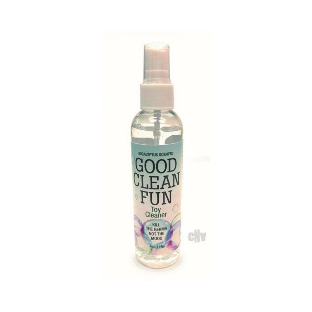 Good Clean Fun Toy Cleaner Spray is specially formulated to keep your personal pleasure products free of harmful germs and bacteria. Enjoy the lightly scented options of Lavender and Eucalyptus or Unscented. Good Clean Fun is safe for all your personal pleasure products and should be part of your healthy cleaning regimen.