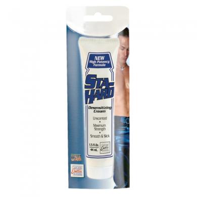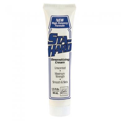 Sta-Hard is a desensitizing cream used to help the man pro-long an erection and delay premature ejaculation. Ingredients: Deionized water, lanolin oil, stearyl alcohol, cetyl alcohol, sorbitol, polysorbate 80, petroleum, benzocaine, sorbitan wonooleate, methylparaben.Bulk Packaging: This item is not in retail packaging. It is usually in a plain box, wrapped in plastic or in a poly bag. The item is new and untouched.