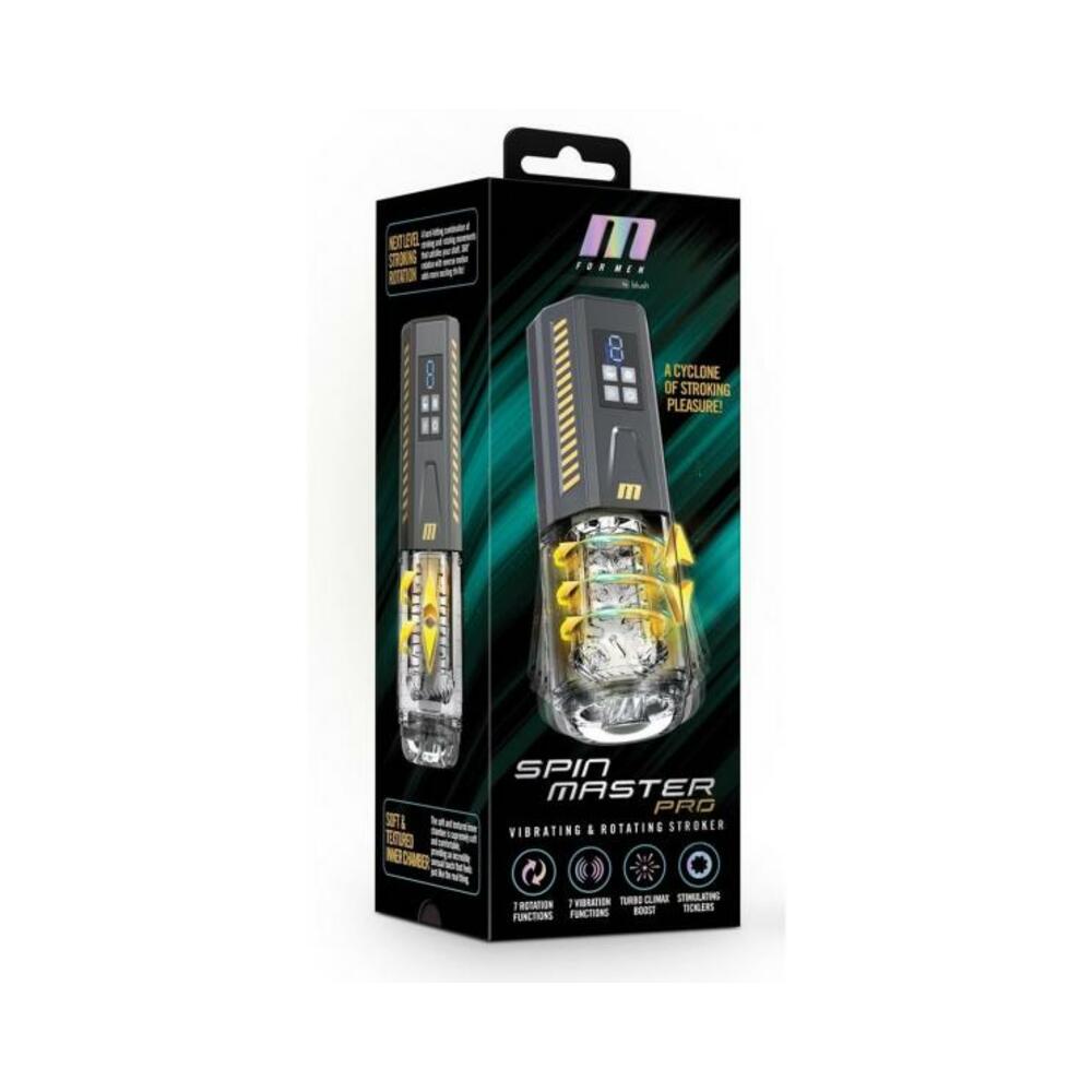 Experience a cyclone of pleasure with the SpinMaster Pro! This automatic male masturbator is built for serious performance and innovation, transcending your play to an elite standard of luxury. Customize your stroking sessions with 7 bold vibration modes and 7 stroking rotation modes with a blend of varying speeds and patterns. 360° full rotation stimulates every inch of your shaft, wrapping you in a vortex of phenomenal mind-blowing sensations. Activate the SpinMaster’s turbo climax boost for maximum speed and power, testing your edge and building to an amazing climax. The digital display function tracks your settings on the stroker’s front screen, so you can seamlessly operate between modes. The soft and textured inner chamber provides a smooth, realistic feel with a protective case that keeps it clean for long term use. With a USB-C charger included, enjoy up to 60 minutes of power on a full charge, going longer and harder than ever before. Are you ready to handle the storm?