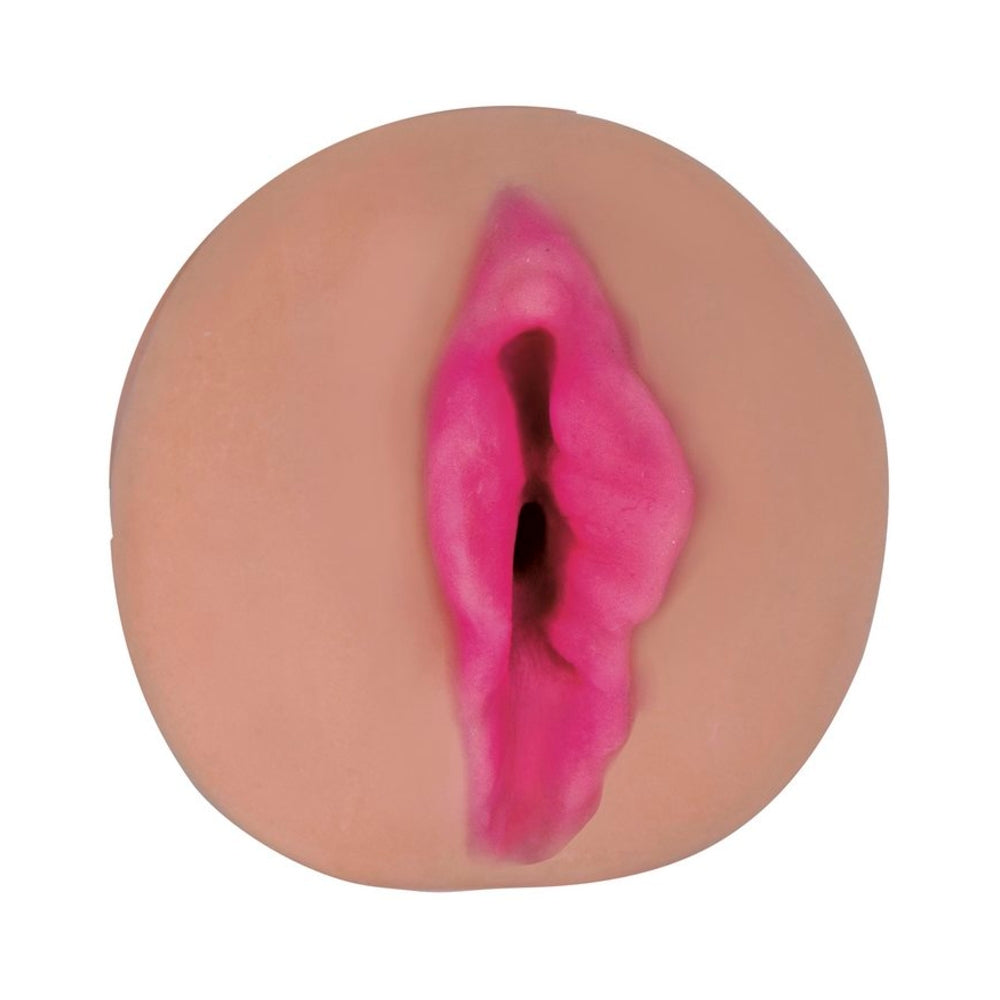 Double textured with ribs and nubs for intense pleasure. Soft and stretchy with realistic hand-painted lips for a real life look and feel. Compact design with non-slip comfort grip. Narrow inner chamber for a tight sensation. Open-ended design makes clean up a breeze. Use only with water- or silicone-based lubricant.