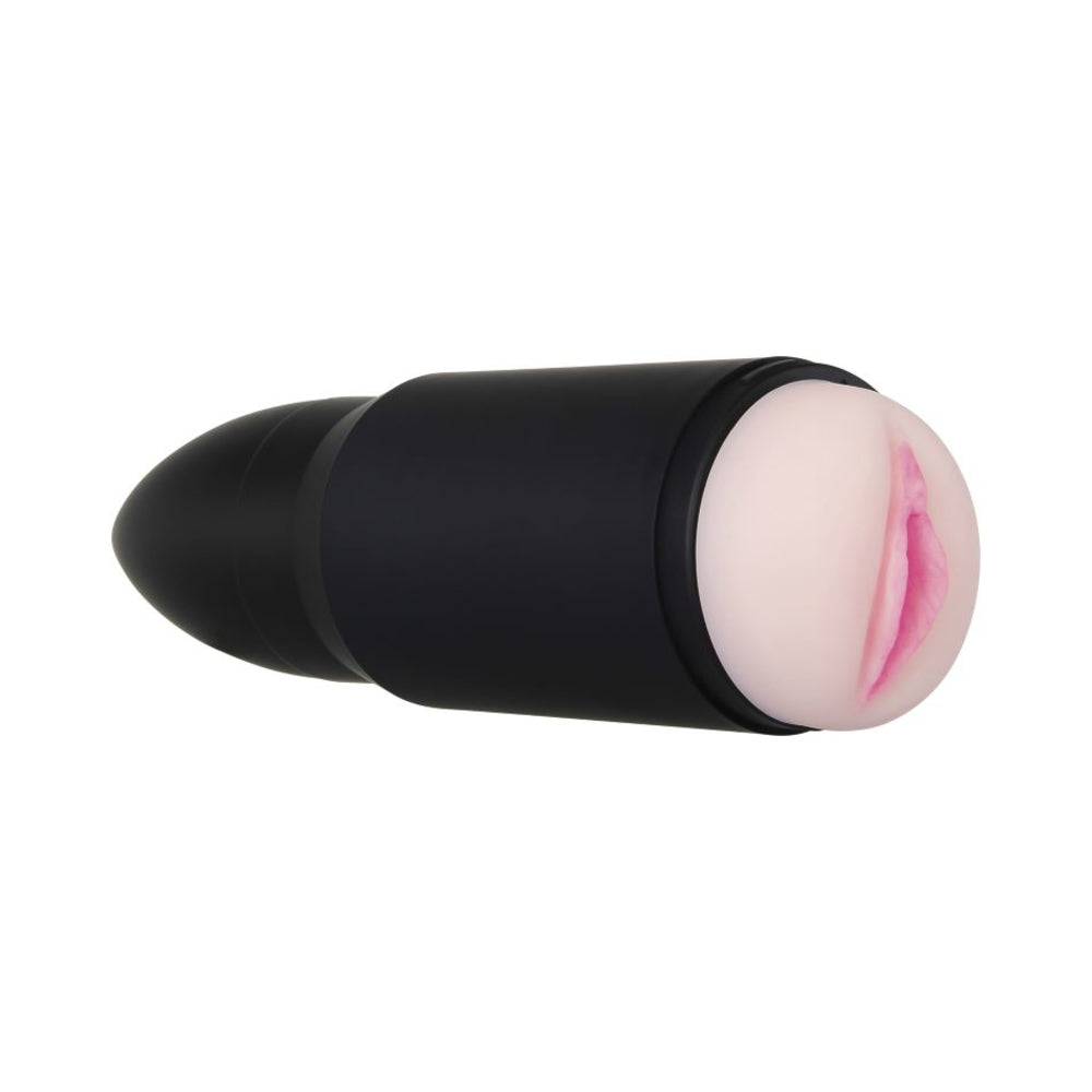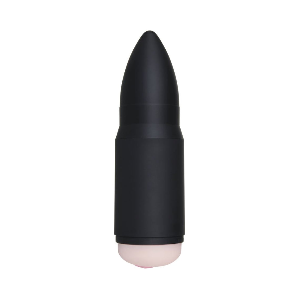 Equip your arsenal with an ammo-grip stoker! Shell Shock’s durable bullet-shaped canister fits comfortably in your hand, and the realistic full-color vaginal lips tucked inside like a sweet surprise feel just like the real thing – with the added vibrations of your choice. With a feature length adult movie and free lube to give you inspiration, let the soft, stretchy chamber hold you tight, even underwater as it’s completely submersible. clean-up is easy with Zero Tolerance masturbator cleaner and a warm water rinse, and the bullet pops out of the sleeve which pops out of the canister so there’s no fussing with parts. Get battle-ready and let your fantasies run wild. USB Rechargeable, cable included. 5 Year Warranty. 7 vibrating speeds & functions. BLue LED illuminates when in use & charging. Stoker made from soft, stretchy, pliable TPR. COLOR: BLACK@np2020-05