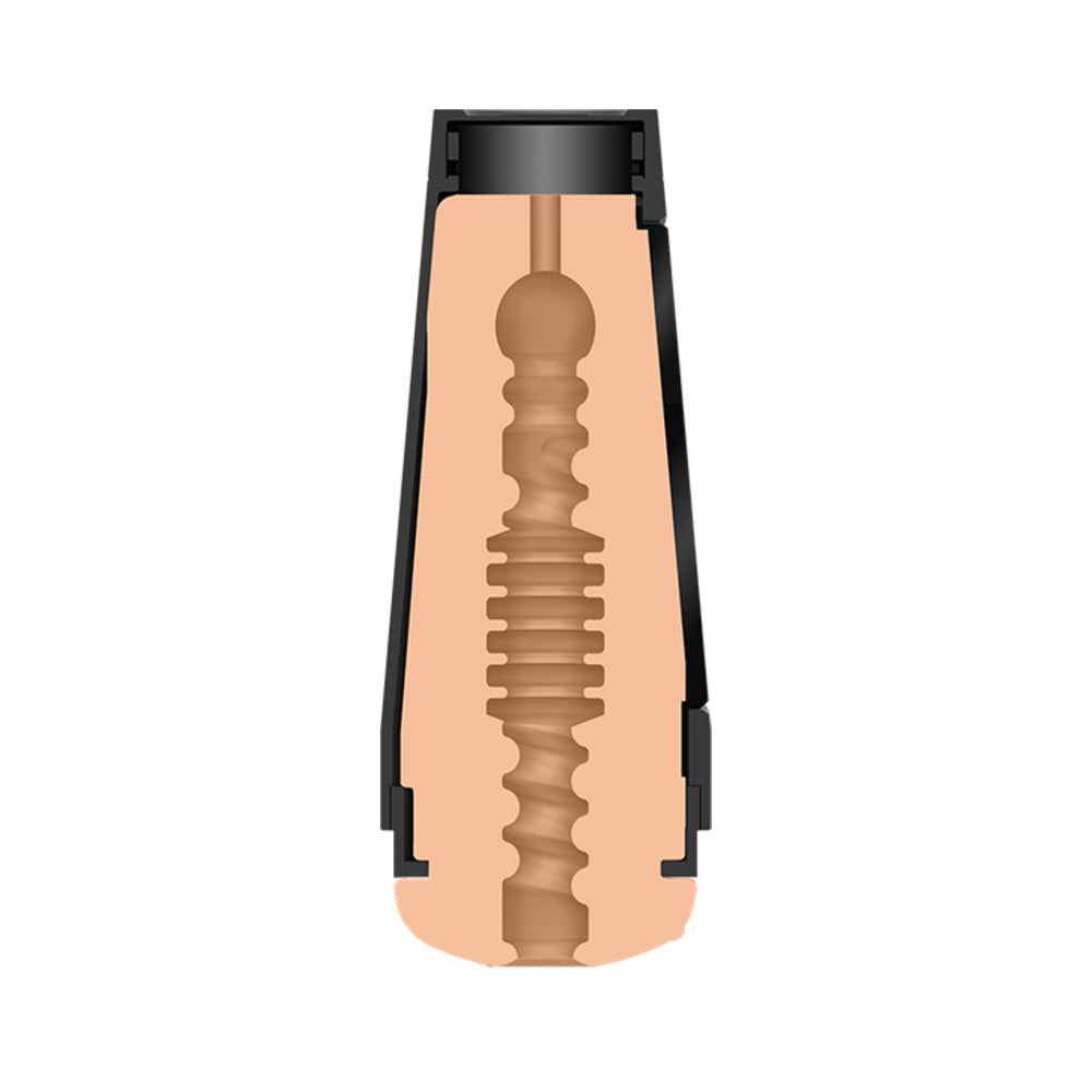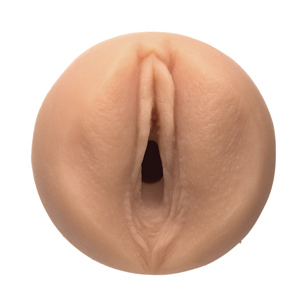 This textured Ultraskyn masturbator is molded from porn star Jessie Andrews. Features a hard outer case with a built in squeeze plate grip that allows user to control pressure. The base twists to adjust suction strength. Fully disassembles for cleaning. Measures 7.5 inches long by 3 inches.