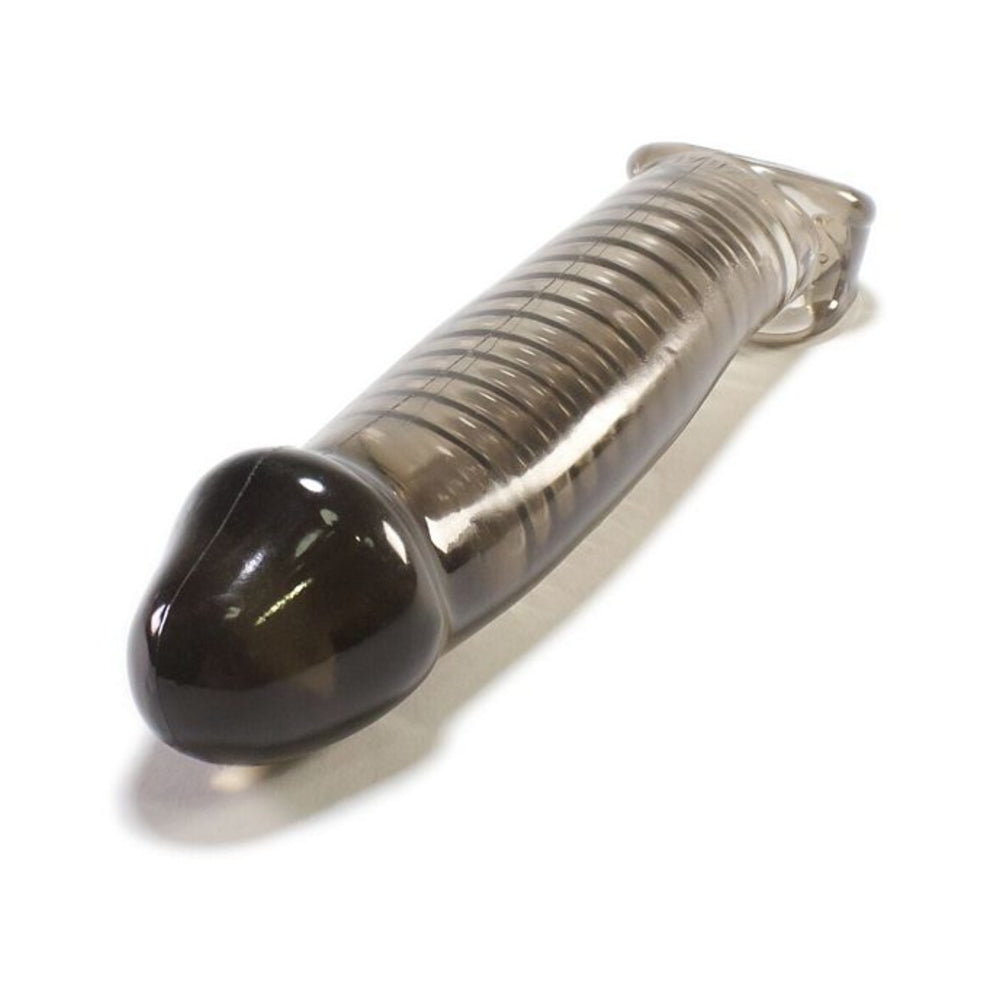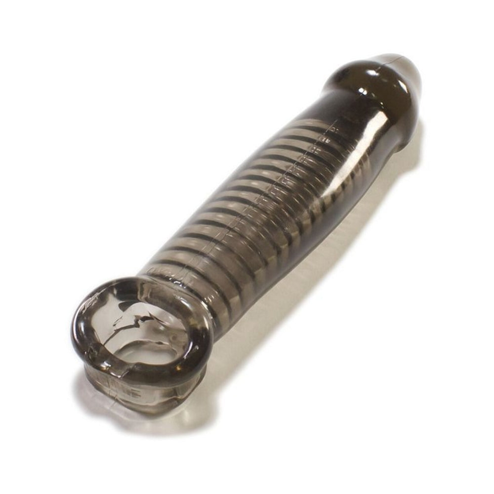 Super soft Flex-TPR cock sheath has soft ridges that add massage sensations. For a tighter fit, a small silicone stopper locks into the grooved indents at whatever length suits you. Measures 9.25 in. long, 8 in. insertable, with a circumference of 6 in.