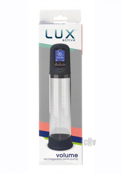 Pump up the Volume and get to know LUX Active`s latest addition! The Volume is an intuitive high-tech penis pump which allows the user to sit back while it does all the hard work no pun intended thanks to its incredible automatic mode. Right out of the box, the Volume comes equipped with a USB charger as well as a replacement waterproof ring for the control head. Slip inside from the silicone opening with comfort and ease. The Volume is controlled by three buttons: · The power button for turning ON/OFF and switching between modes. · The plus (+) button for increasing pressure level. · The minus (-) button for decreasing pressure level and air release. Volume has 2 modes of operation to choose from: Automatic andamp; Manual. Simply put, automatic mode allows the user to relax while the Volume works its magic on its own. In Manual mode, the user can choose their desired pressure level. To switch between modes, repeatedly press the power button. On the control panel, monitor everything from vacuum pressure, to the amount of time spent pumping per session. Want to see and track progress? Easily measure growth with the marked measurements along the side of the cylinder. When you want to turn off your device, simply press and hold the power button for 3 seconds. To charge the battery, plug the USB cord in underneath the three control buttons and attach the USB part to a power brick or other power source. Look after your pal with the LUX Active Volume the only pump you`ll ever need!