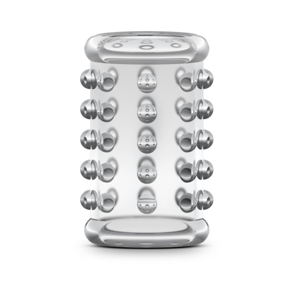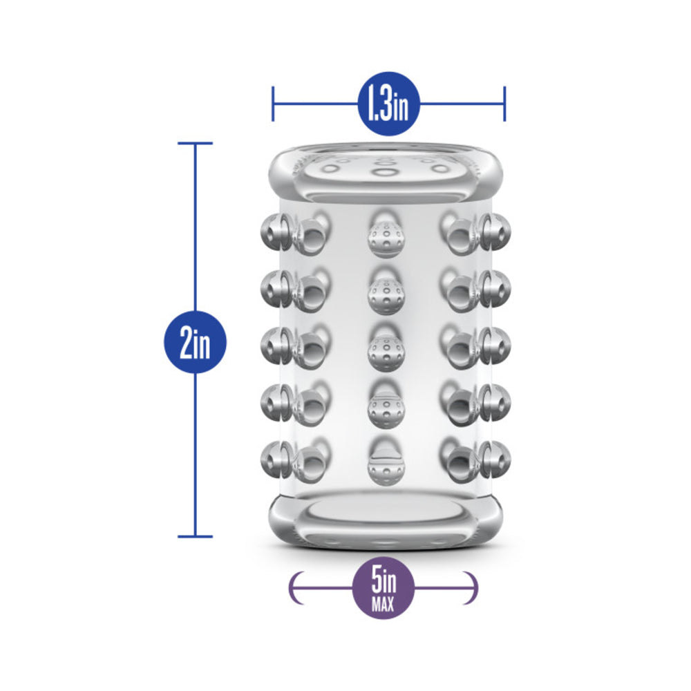 Stretchy and textured enhancement sleeve adds pleasure and sensation. Just slide over your shaft or a dildo. One size fits most. Measures 2.04 inches long, 1.57 inches diameter, 4.92 inches circumference.