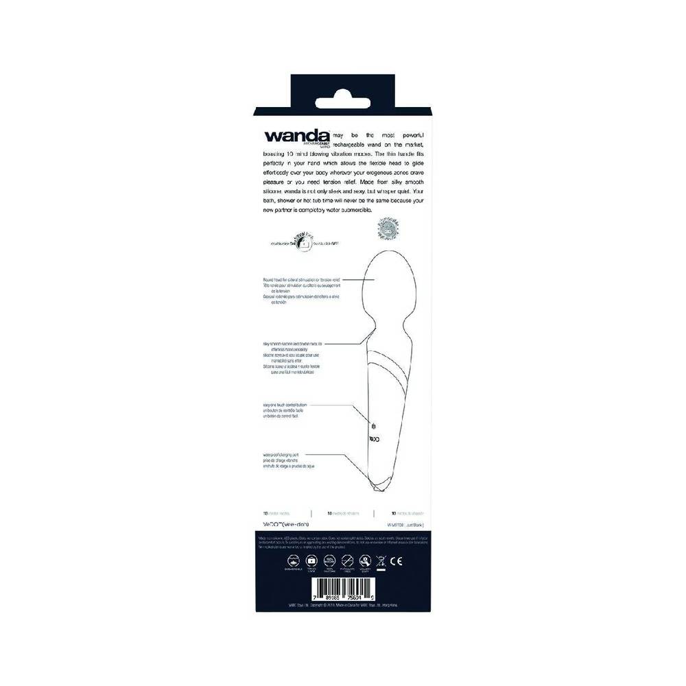Wanda rechargeable wand may be the most powerful rechargeable wand on the market, boasting 10 mind blowing vibration modes. The thin handle fits perfectly in your hand which allows the flexible head to glide effortlessly over your body wherever your erogenous zones crave pleasure or you need tension relief. Made from silky smooth silicone, wanda is not only sleek and sexy, but whisper quiet. Your bath, shower or hot tub time will never be the same because your new partner is completely water submersible. Run time 1 hour length 24cm maximum. diameter 5.5cm. USB rechargeable body massager.