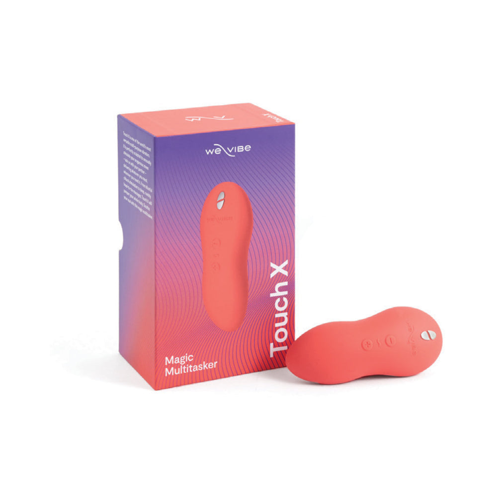 We-Vibe, the leading couples’ sex toy line in the world, presents Touch X: the second evolution of the best-selling handheld sex toy for over 10 years! Travel-friendly, ergonomic, and powerful, Touch X is just as petite and durable with added features! Touch X’s strong motor boasts 7 deep, rumbly vibration patterns to choose from with 8 intensity levels, and the ergonomic silicone design fits perfectly in the palm of a hand! The cupped tip fits snugly around the vulva, delivering broad, yet intense stimulation to the clitoral area. Slip between partners during sex or use it as a massager for other areas – Touch X does it all! Cycle through Touch X’s functions with the easy-to-use two-button control! This soft, sensuous vibrator can also be used as a lay-on vibe for hands-free fun! Whether solo or in the hands of a partner, Touch X has all the bases covered! Made from smooth, durable, body-safe, hypoallergenic silicone Touch X is silky smooth to the touch! USB rechargeable, quiet, and convenient, Touch X features a travel lock to prevent it from switching on accidentally! Use the silky storage pouch to keep Touch X on-the-go. The discrete design is inconspicuous, yet stylish! Touch X is 100% waterproof, so using it in the bath, shower, or other wet areas is a splash! We-Vibe has been designing and producing premium quality, fun, and interactive couples’ sex toys for over 12 years. With over 6 million units sold and a dozen and a half awards, We-Vibe adult toys have quickly become a staple in everyone’s boudoir (or outside of it!) All We-Vibe sex toys are phthalate-free, latex-free, BPA-free, are only made from body-safe materials, and feature a 2-year warranty. Find them in a sex shop near you! Type: Clitoral, Lay-on, Pebble Control: Two-button manual Material: Body-safe silicone Colors: Crave Coral; Green Velvet USB Rechargeable Battery: Lithium-ion battery Waterproof 7 vibrating patterns 8 levels of intensity Quiet Runtime: (up to) 2 hours Charge time: 90 mins Dimensions: 10.22 cm x 4.33 cm x 3.43 cm Length: 10.22cm/4.02in Warranty: 2 Year