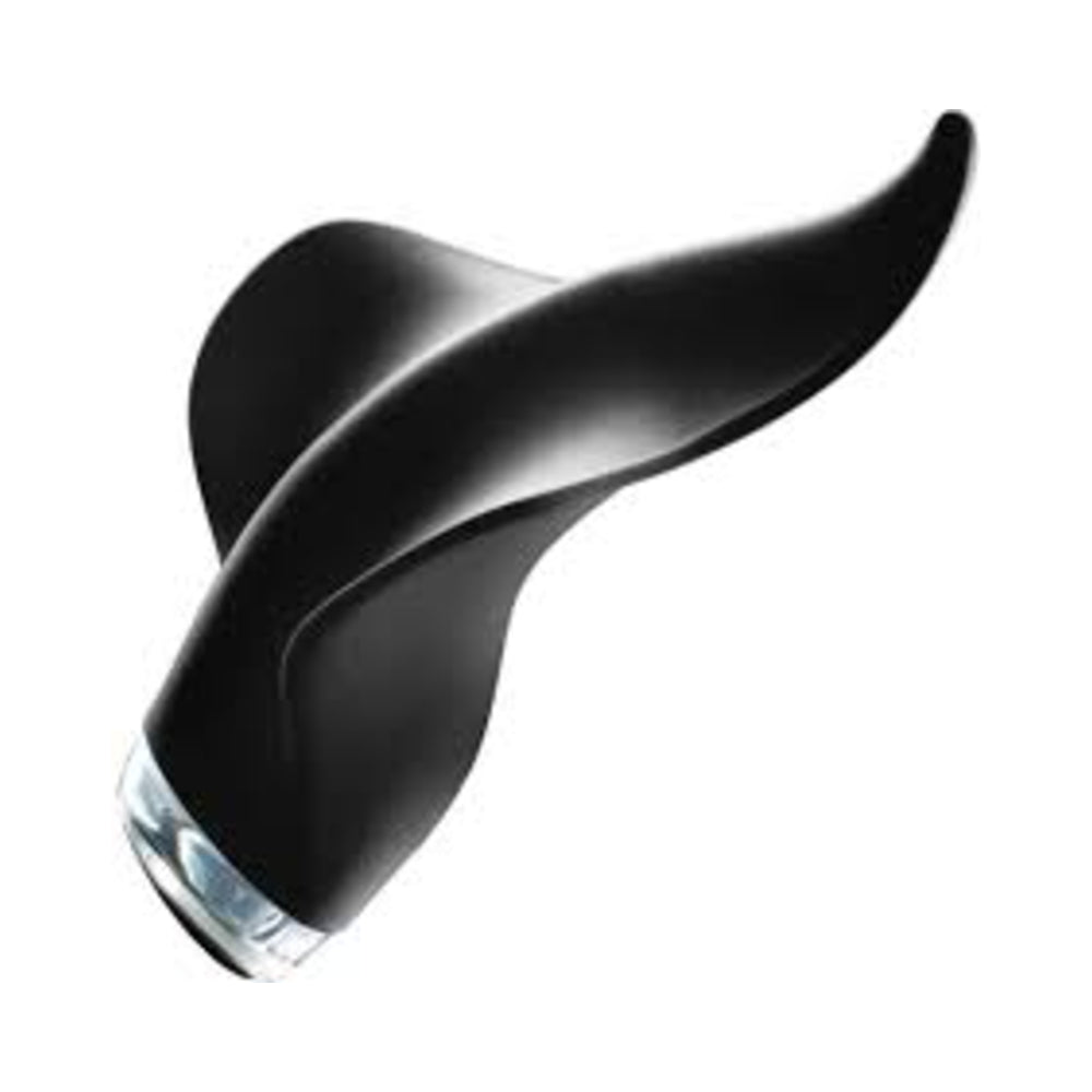 Uniquely shaped silicone vibrator provides discreet vibrations. Features 8 vibration patterns and an LED base that assists in the dark and serves as a charging indicator. Waterproof. USB rechargeable, with cord included. Satin storage bag included. Measures 3.75 inches long, 3.5 inches at largest point.