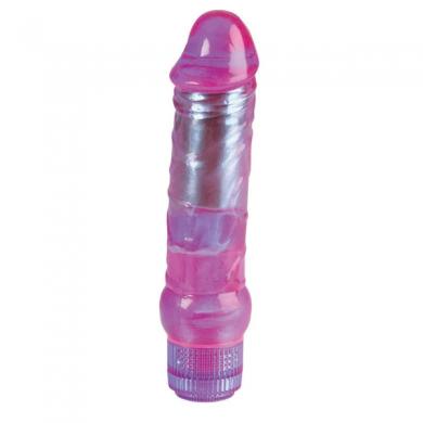 Waterproof, multi-speed, powerful 6-1/2 inch vibrating and gyrating Crystalessence penis! Uses 2 `AA` size batteries (not included).