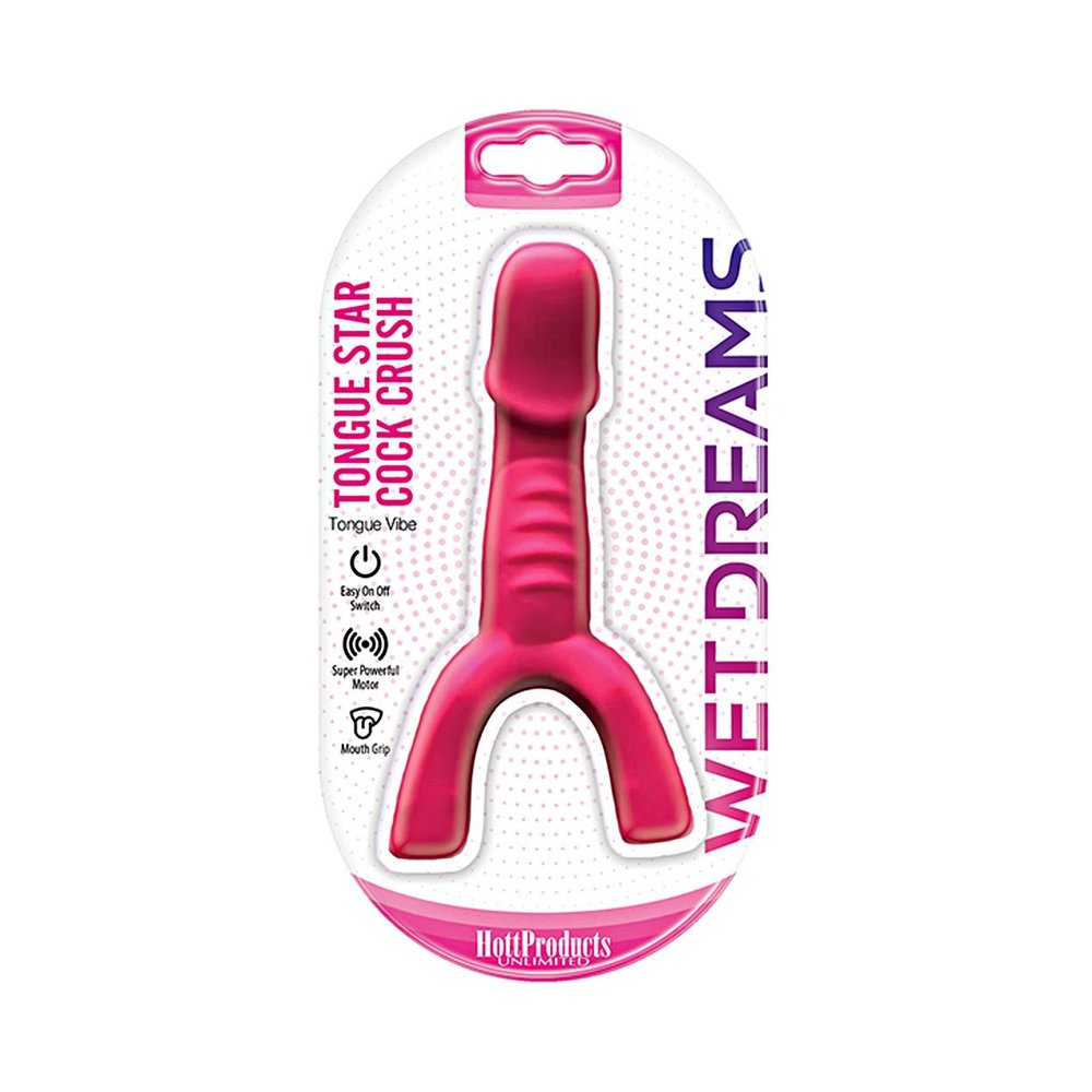 Wet Dreams Tongue Star Cock Crush Tongue Vibe Pink from Hott Products. Features an easy on off switch. Super powerful motor. Mouth grip.