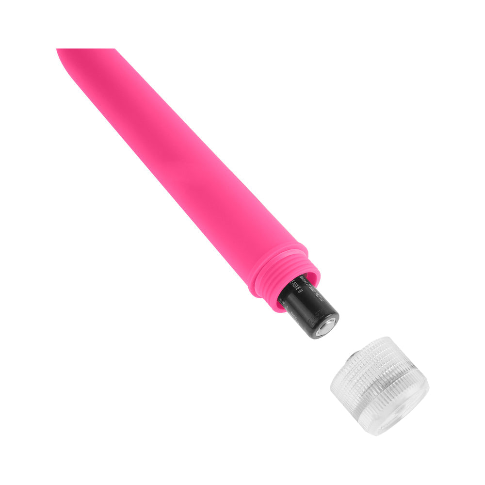 You will glow with pleasure from this radiant neon multi-speed vibe! Lined with our super soft Luv Touch material, this vibrant vibe is smooth to the touch, satisfying and ultra sleek. Choose a speed that is right for you and let the silent vibrations whisk you away. Try it in the shower or hot tub and turn bath time into passion time! Vibrator requires 2 AA batteries, not included.