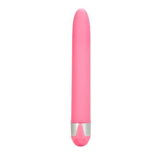 Party on with these silky smooth and seamless massagers. Powerful multi-speed. ABS with Velvet Cote polyurethane PU cote. Metallic plating cap band. 6.5 inches by 1 inch. Vibrator requires 2 AA batteries, not included.